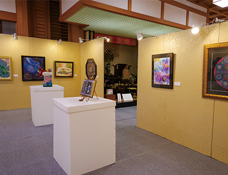 山も色づきはじめ、空気の澄んだ紅葉のシーズンに本展会場となった清水寺の圓通殿には、日本画、洋画、彫刻、工芸、書道、写真などのお作品が並び、歴史深い清水寺に並んだ様々な芸術表現を、ご来場者にお楽しみいただきました。